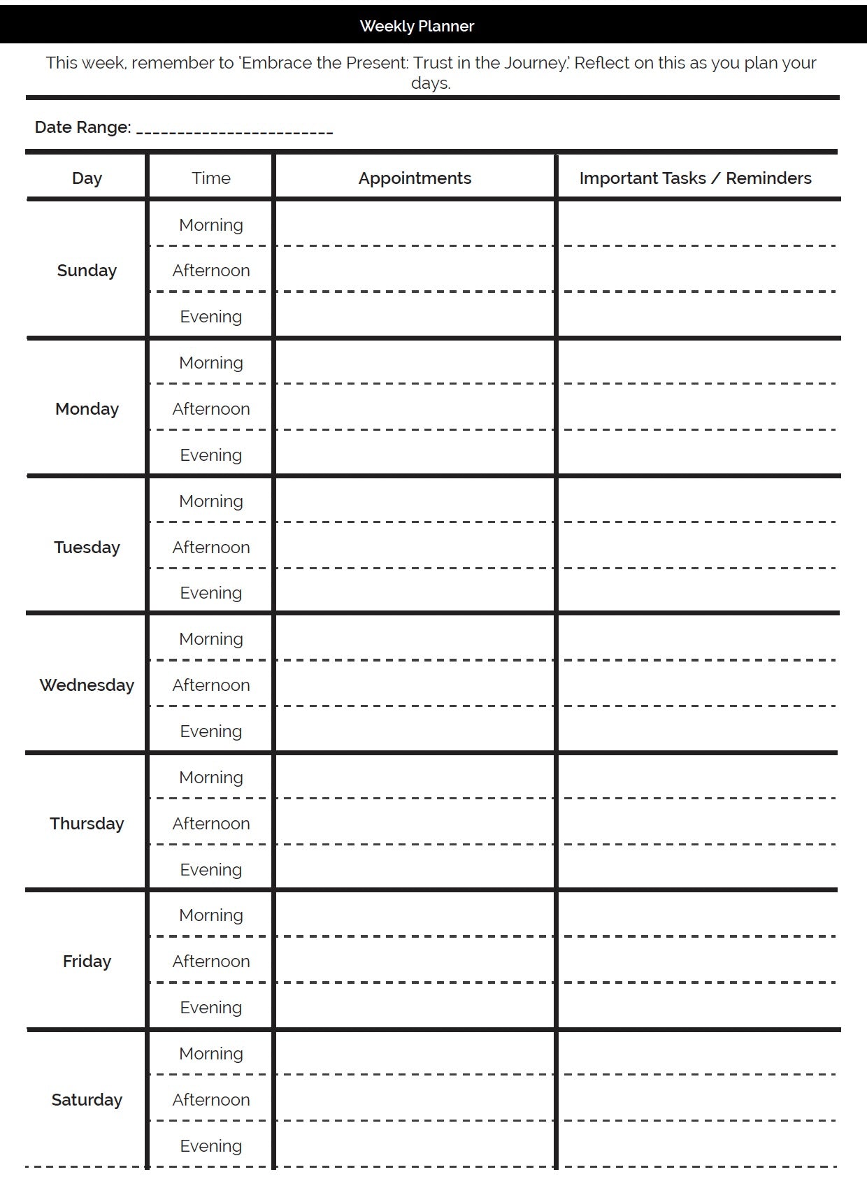 - Weekly Reflections with a 12-Step Focus: Each week features prompts and sections inspired by the 12-step recovery process, fostering mindfulness, gratitude, and personal development.
